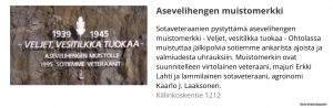 Muistomerkkejä Virtain Kirkon lähistössä, sekä Killinkosken tiellä