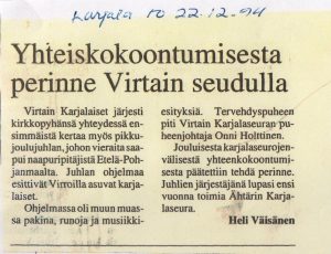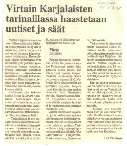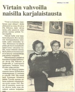 Tällä sivulla Virtolaisen Heli Antilan tekemiä haastatteluja ja juttuja KARJALA -lehteen. Toimintaa on aikanaan ollut omalla paikkakunnallakin – Virtain Karjalaisseuran toimesta. Vanhoista lehtileikkeistä skannattujen juttujen näkyvyys saattaa vaihdella – mutta aitous on säilynyt !