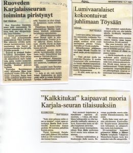 Lähiseudun Karjalaisseurat ovat olleet myös aktiivisia. Juttuja KSML -lehdissä.